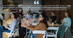 Cities are getting ready to think about their land differently. My optimism comes from believing that with fresh faces and diverse perspectives, real estate is going to have a bigger mission and public policy alignment, and create greater impacts and benefits for our communities.