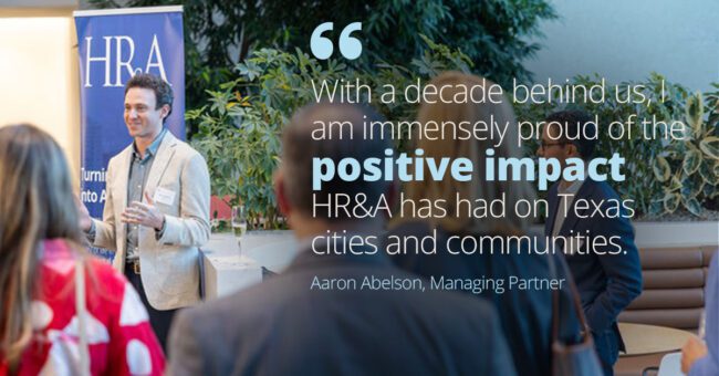 We often get involved in projects at their earliest stages, which means that seeing the physical or community impact can sometimes take years. But with a decade behind us, I am immensely proud of the positive impact HR&A has had on Texas cities and communities.